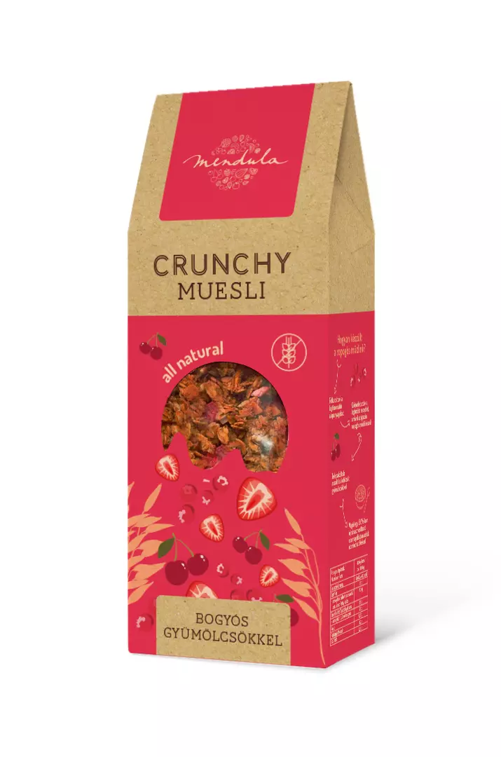 Indítsd a napot vidáman egy gyümölcsös, ropogós müzlivel! Ropogós müzlialap almasűrítménnyel és datolyasziruppal édesítve, amelyek már önmagában is biztosítják a kirobbanóan gyümölcsös ízt, de az élményt aszalt és liofilizált bogyós gyümölcsök teszik teljessé.